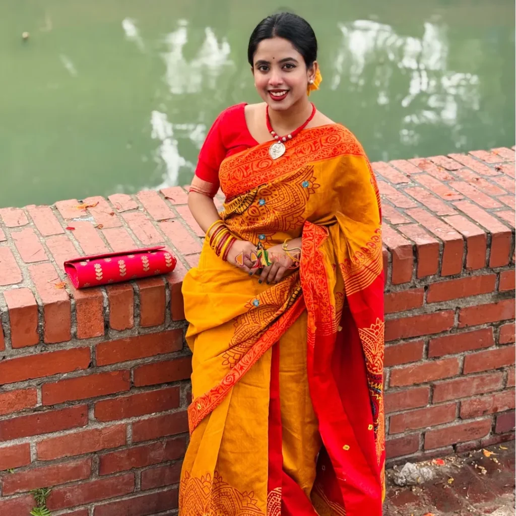 শাড়ি নিয়ে প্রতারিত হবেন না। অরিজিনাল ধুপিয়ান সিল্ক এমব্রয়ডারি ব্লক প্রিন্ট